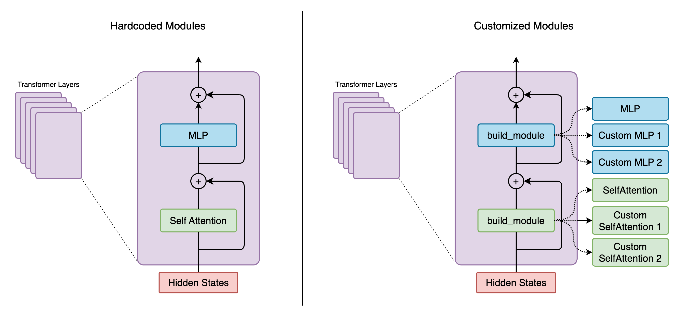 Using Mcore Spec, we can customize model initialization and model forward.