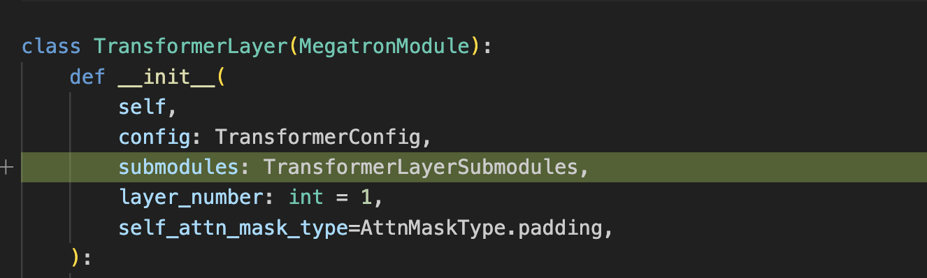 1. assigning the module, which is the TransformerLayer class used in mcore GPTModel